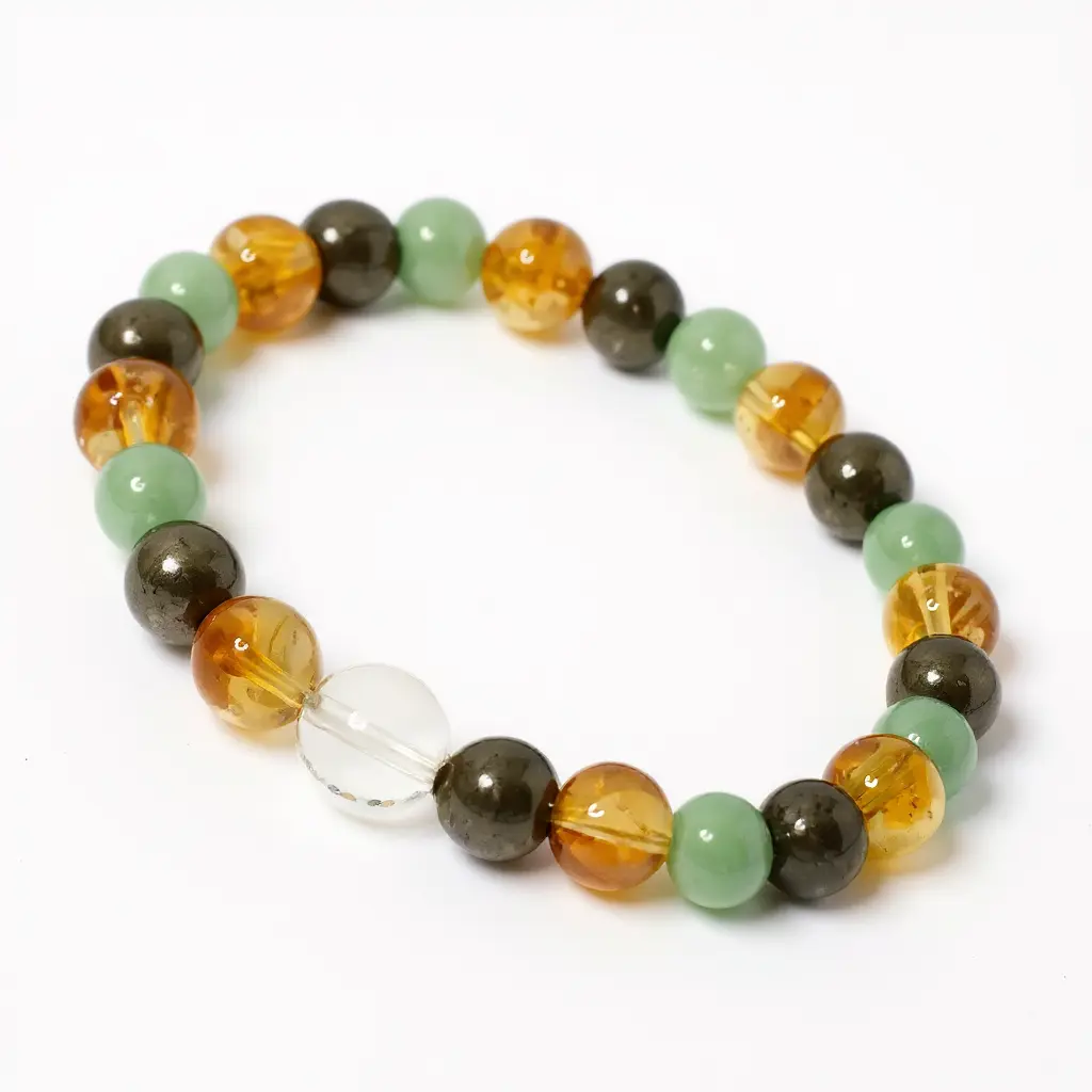 Crystals: Pyrite, Green Aventurine, Citrine and Clear Quartz.